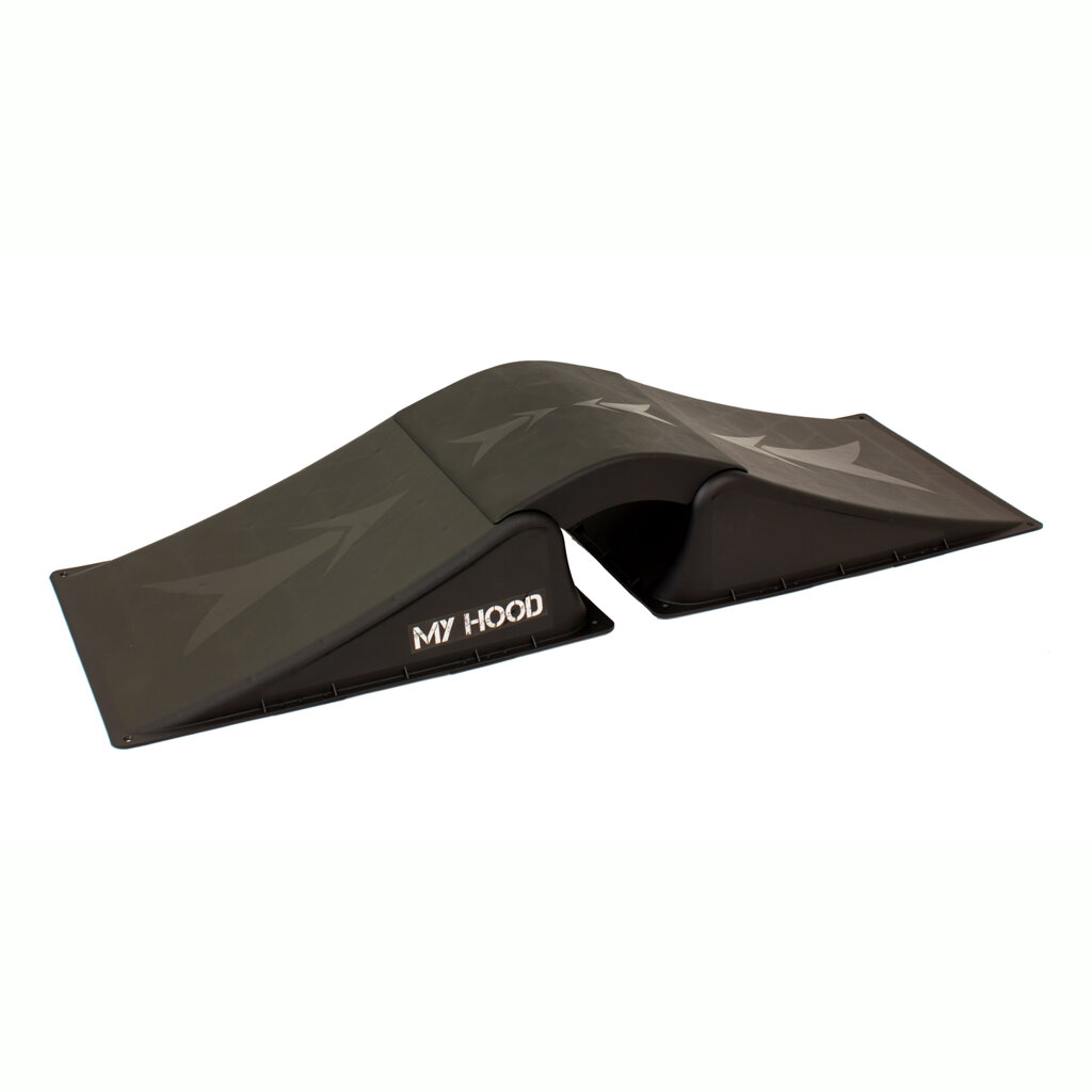 Rampa 2 Way Mini s výškou cca 16 cm je jasná volba při bruslení nebo jízdě na koloběžce. Rampa se snadno přemisťuje, má nízkou hmotnost, zato vysokou odolnost a nosnost až 100 kg. Trénovat tak můžete například na obytné ulici nebo na příjezdové cestě. Je jednou z absolutně nejoblíbenějších v sérii a se dvěma různými distančními podložkami lze rampu sestavit do „ploché“ a konkávní 2-cestné rampy. Rampy My Hood mají protiskluzovou spodní stranu, takže stojí stabilně, aniž by byly ukotveny k zemi.