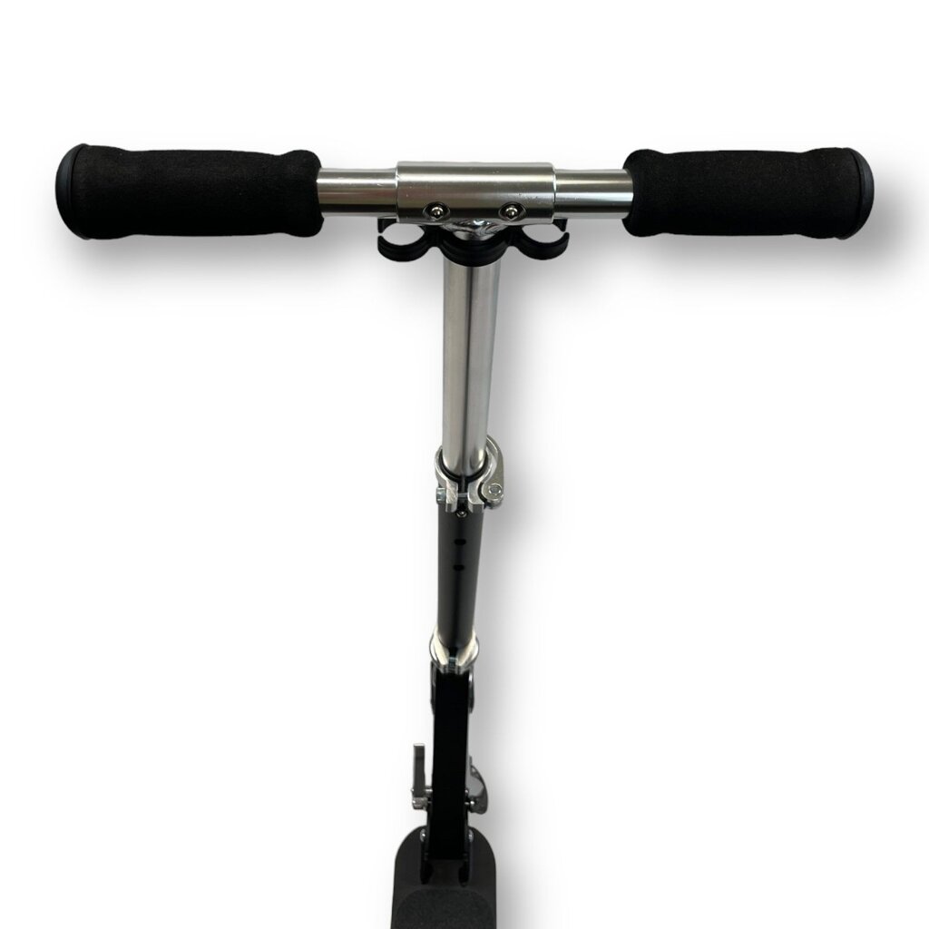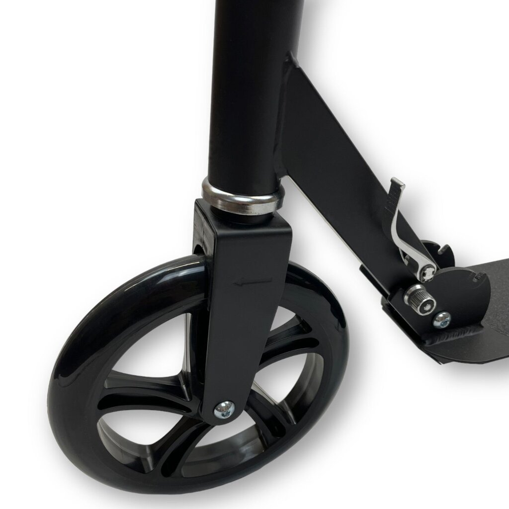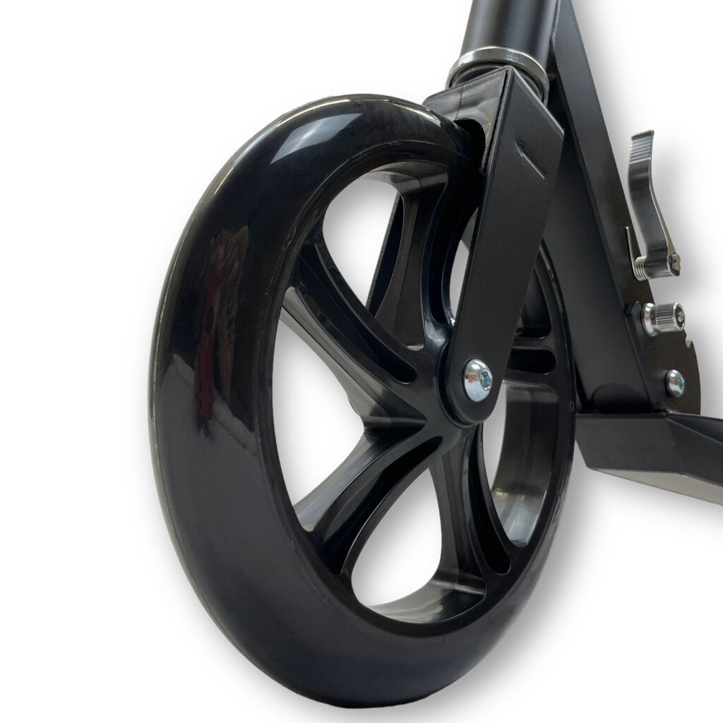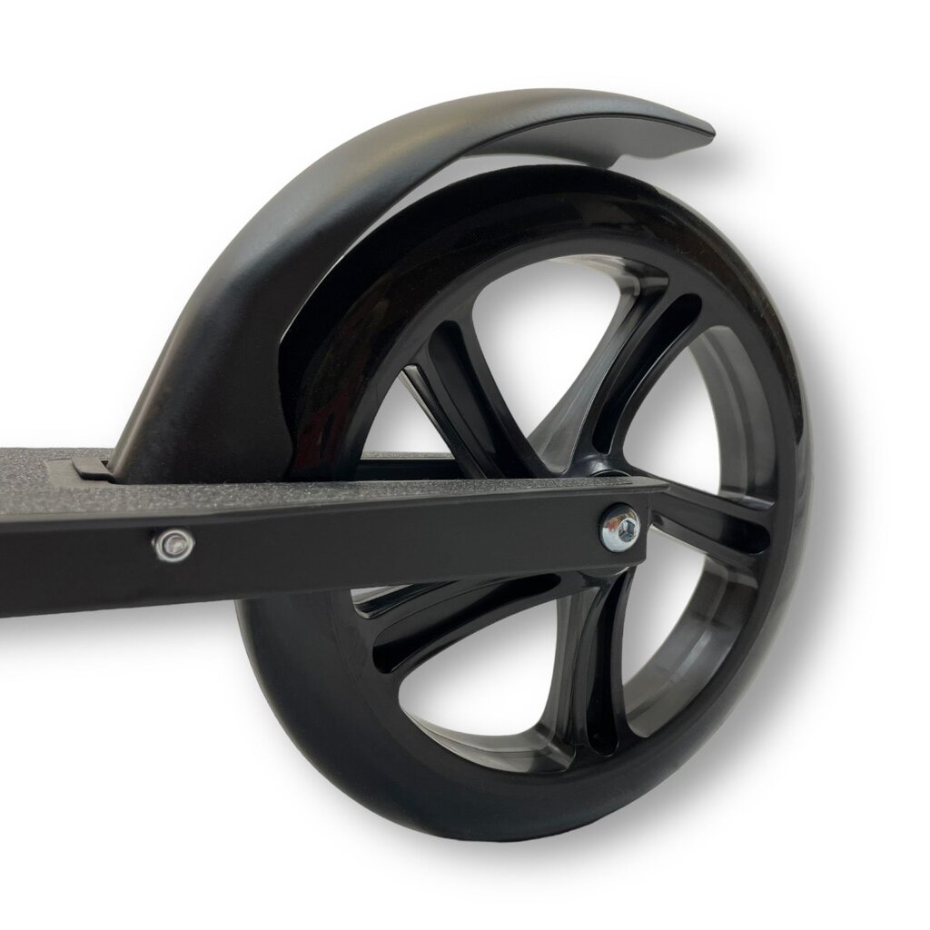 Tato opravdu kvalitní klasická koloběžka je opatřena velkými 200mm PU kolečky, která spolu s kuličkovými ložisky ABEC 5 zajišťují pohodlnou jízdu bez námahy. Pevný hliníkový rám se silným lakováním koloběžce zajišťuje dobrou odolnost a to při hmotnosti pouhých 3,6 kg. K výbavě koloběžky patří i výkonná brzda na zadním kole. Koloběžka My Hood 200 disponuje nosností 100 kg a výšku řídítek lze nastavit v rozmezí od 88 do 98 cm. Díky chytrému skládacímu mechanismu koloběžku snadno a rychle složíte - ať již za účelem transportu či uskladnění. Kolobězka je vhodná pro děti od 5ti let.