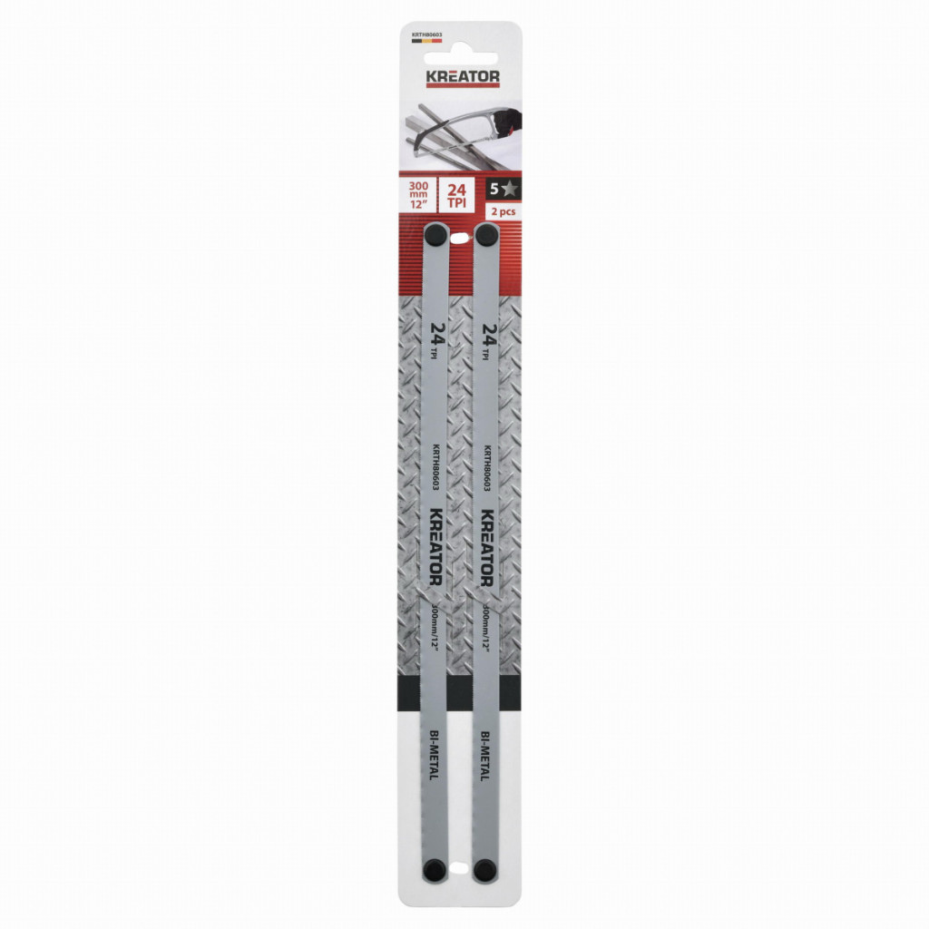 Dotaz na produktPotřebuje vyměnit pilový plátek na vaší pile? Tyto 2 pilové plátky KRTH80603 od Kreator pasují na pily, které používají plátky o délce 300 mm. Jsou vyrobeny z bimetalu, mají 24 zubů na palec (TPI) a jsou ideální pro řezání PVC, hliníku a dalších kovů.