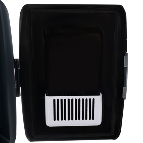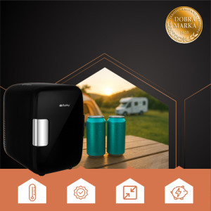 Pojme plechovky nebo lahve s nápoji o výšce až 19 cm . Chladnička je pevně uzavřena a rukojeť se západkou chrání před náhodným otevřením. Uvnitř je výsuv police a kapsa ve dveřích . To umožňuje bezplatné skladování různých typů produktů. Lednička lze jej napájet ze sítě pomocí kabelu nebo ze zásuvky autozapalovače . Obě elektrické kabely jsou součástí sady . Napájen tradičním způsobem může být použit také v kanceláři, na zahradě nebo jiném místě podle individuálních očekávání. Pokud však chladničku používáte mimo budovu, je velmi důležité nenechávat zařízení přímo venku a nevystavovat ho slunečnímu záření nebo vlhkosti. Pomáhá při přemisťování chladničky speciální, šikovná rukojeť vytažená z pouzdra . Zařízení lze jej použít i jako ohřívač . Přepínání mezi funkcemi probíhá pomocí přepínače umístěného na zadní straně a aktivaci daného režimu signalizuje rozsvícená dioda.