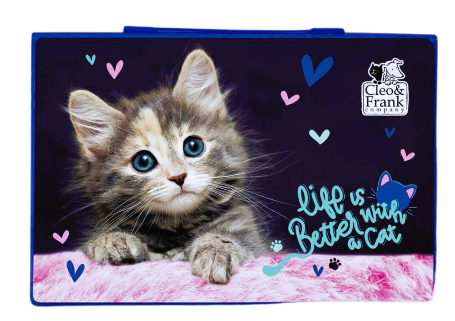 Velká umělecká sada v praktickém kufříku. Obsahuje 71ks příslušenství. Potisk s motivem Cleo a Frank je na všech dílech sady a na uzavíratelném plastovém kufříku s ouškem. Sada obsahuje: 15 cm pravítko 12 pastelek 12 fixek vodové barvy štětec tužku gumu ořezávátko lepidlo 12 pastelek 12 voskovek Rozměry kufříku: 31 x 21 x 4 cm Výrobce: Derform.