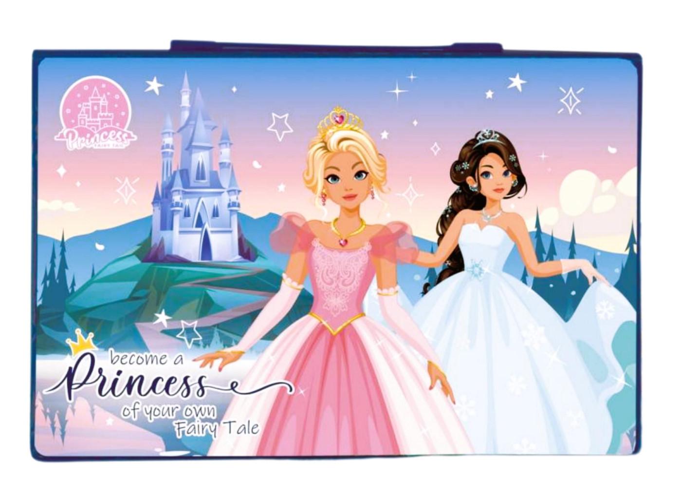 Velká umělecká sada v praktickém kufříku. Obsahuje 71ks příslušenství. Potisk s motivem Princezny je na všech dílech sady a na uzavíratelném plastovém kufříku s ouškem. Sada obsahuje: 15 cm pravítko 12 pastelek 12 fixek vodové barvy štětec tužku gumu ořezávátko lepidlo 12 pastelek 12 voskovek Rozměry kufříku: 31 x 21 x 4 cm Výrobce: Derform.