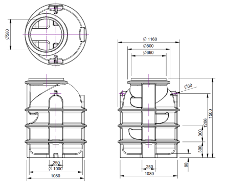 vnitřní průměr 1200 mmvnější průměr 1392 mmvýška 1500 mmprůměr revizního otvoru 600 mmhmotnost 70 kgmateriál PEVlastnostiuvnitř samosvorné průchodky DN32manipulační oka 2 kszelený UV poklop s...