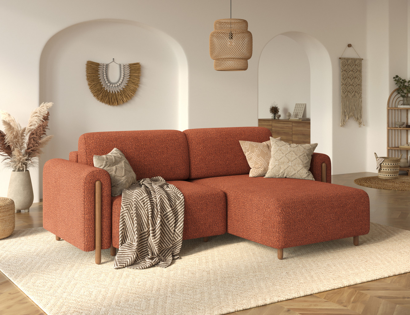 Dotaz na produkt Na splátky ještě dnesRohová pohovka Acossta je moderní a funkční čalouněný kus nábytku určený pro každodenní pohodlí a dlouhou životnost, díky čemuž je ideální jak pro obývací pokoje, tak pro relaxační zóny. S celkovými rozměry 244 × 154 × 95 cm a hmotností 121,7 kg se tento model vyznačuje pevnou konstrukcí a ergonomicky tvarovaným tvarem, který zajišťuje vysokou úroveň pohodlí při sezení a odpočinku. Pohodlí sezení zajišťuje kombinace vlnitých pružin typu B a vysoce pružné pěny HR3030, zatímco opěradlo vyplněné polyuretanovou pěnou T2315 nabízí stabilní a pohodlnou oporu zad. Rohová pohovka Acossta se může pochlubit spací funkcí s plochou 49 × 200 cm, což z ní činí praktické řešení pro občasné hosty, kteří u ní přenocují, a rozkládací mechanismus DL s automatickou nohou umožňuje rychlou a plynulou přeměnu. Další výhodou je integrovaný úložný prostor na ložní prádlo, který zvyšuje funkčnost a poskytuje pohodlné ukládání, díky čemuž je rohová pohovka Acossta ideální volbou pro ty, kteří hledají rovnováhu mezi designem, pohodlím a praktickými prvky. Látky: Jaffray 30