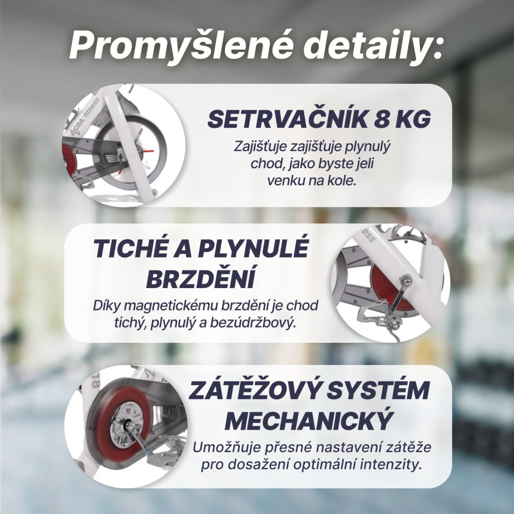 - Plynulý a realistický pocit z jízdy: Setrvačník s hmotností 8 kg zajišťuje plynulý chod a realistický pocit z jízdy, jako byste jeli venku na kole.