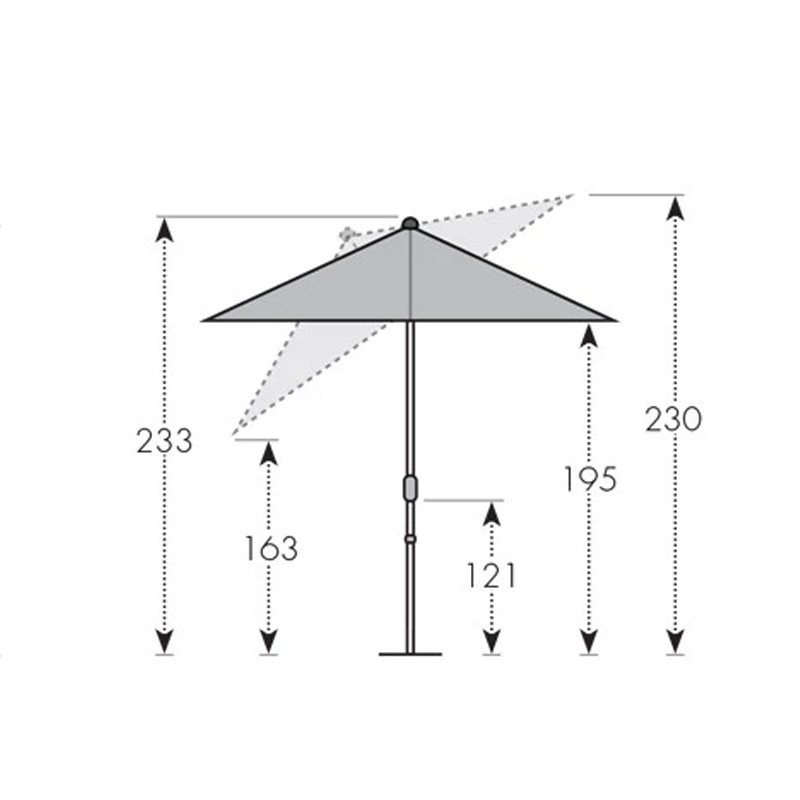 - slunečník s automatickým naklápěním klikou Komfortní funkce automatického naklápění umožňuje naklopení střechy pouhým otočením kliky. Potah slunečníku je vyroben ze 100procent polyesterové tkaniny odolné proti povětrnostním vlivům s dobrou světelnou stálostí a dobrou UV ochranou 50 plus . Moderní barvy tohoto slunečníku Vám zpříjemní pobyt na zahradě nebo na terase. Díky ventilačnímu otvoru ve střeše se pod slunečníkem nekumuluje horký letní vzduch a slunečník je tak i odolnější proti poryvům větru. Informace o produktu: velikost slunečníku cca 210 x 140 cm / 6 ramen doporučené zatížení nejméně 40 kg volně stojící, 25 kg v kombinaci s balkónovou svorkou podchozí výška: cca 195 cm Rám: průměr spodní trubky: 38 mm průměr horní trubky: 35 mm hliníkový rám ocelové vzpěry s klikovým mechanismem funkce Auto Tilt