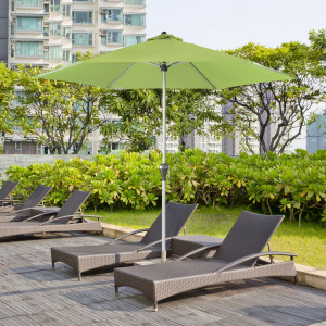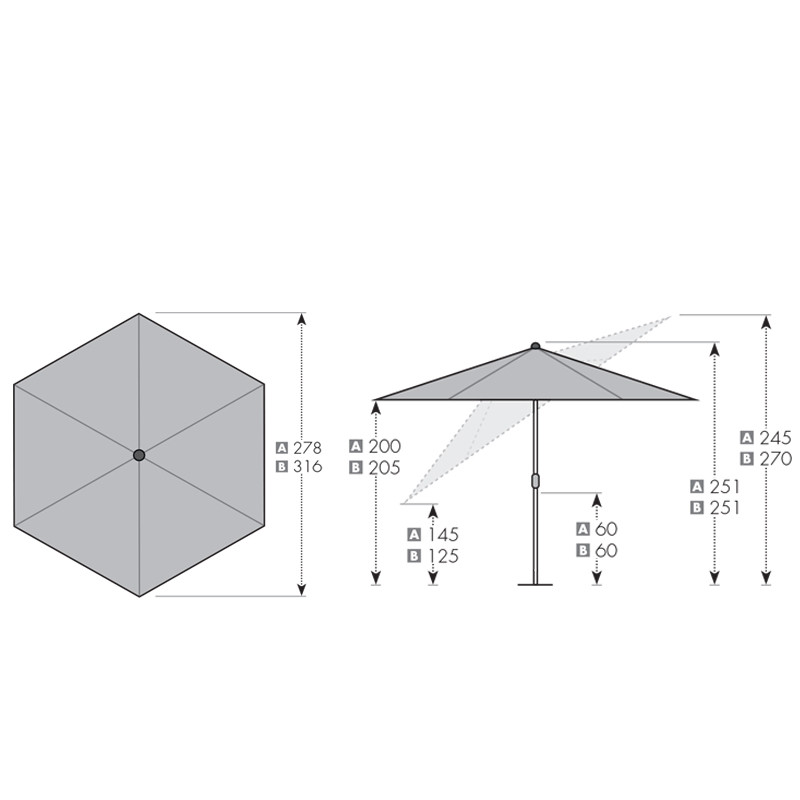 - automatický naklápěcí slunečník s klikou Tento slunečník je ideální na balkón či terasu. Snadné a pohodlné otevření a zavření slunečníku díky kličkovému mechanismu. Slunečník je možné automaticky naklopit při otáčení kličkou. Vodoodpudivý polyesterový potah je snímatelný a je možné ho prát v ruce. Potah je k dispozici v různých barvách a má dobrou ochranu proti UV záření 50 plus , proto nabízí dostatečnou ochranu proti slunci. Informace o produktu: velikost slunečníku cca 280 cm kulatý tvar střechy doporučené zatížení nejméně 50 kg velikost balení: ca 14 x 14 x 167 cm váha balení: ca 5,9 Kg Rám: průměr tyče: 35/38 mm hliníkový rám kličkový mechanismus s naklápěcím kloubem celková výška otevřeného slunečníku: 253 cm podchozí výška: 205 cm Potah: 100procent polyesterová tkanina 180 g/m2 SPF 50 plus stálobarevnost 5 plus odolný povětrnostním vlivům potah je k dispozici v různých barvách