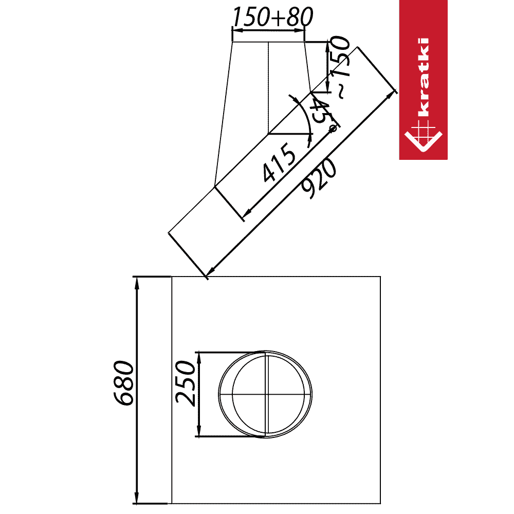Koleno - nastavitelné 45° 150 mm 2 mm