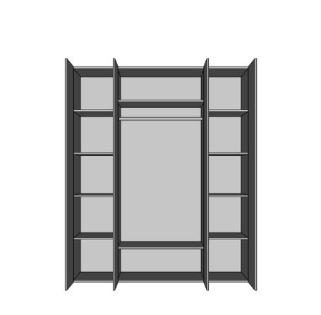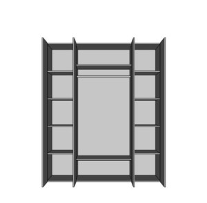 Šatní skříň je vyrobena v elegantním moderním stylu. Nabízí bohatý úložný prostor v podobě polic a šatní tyče.