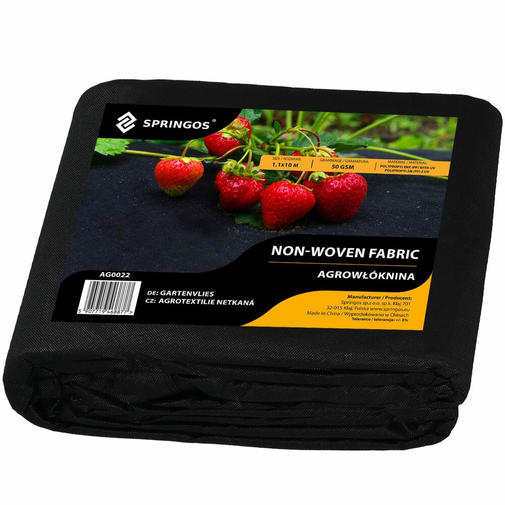 Dotaz na produktNetkaná černá agrotextilie zabraňuje růstu plevelům, udržuje vlkost půdy a ochraňuje rostliny před napadení škůdci. Minimalizuje nutnost používání chemickým přípravků. Vyrobena z ekologického materiálu polypropylen, UV stabilní, standardní gramáž 50g/m2. Šířka 1,1 m, délka 10 m.
