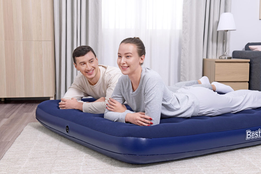 Nafukovací postel z příjemného plyšového materiálu poskytne Vašim zádům optimální podporu díky svislým výztuhám a vnitřním švům.