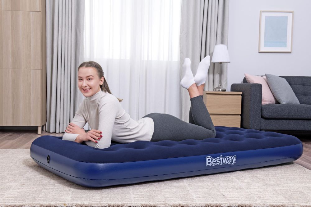 Nafukovací postel z příjemného plyšového materiálu poskytne Vašim zádům optimální podporu díky svislým výztuhám a vnitřním švům.