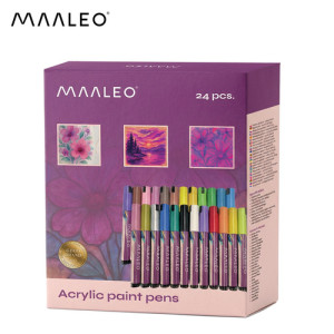 Dotaz na produktTato sada 24 akrylových fixů Maaleo je perfektní volbou pro každého – od začínajících umělců až po nadšence do kutilství a dekorování. Díky dlouhotrvajícímu inkoustu poskytují fixy intenzivní, voděodolné barvy bez rozmazávání nebo blednutí. Jsou vhodné pro papír, sklo, dřevo, látku, kámen a porcelán a vytvářejí efekt podobný malbě s pohodlím fixu. Rychleschnoucí, přesné a snadno použitelné – ideální pro ruční psaní, personalizaci dárků a kreativní projekty.
