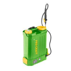 Dotaz na produktAku postřikovač Procraft AS-16 je určený na postřik, rozprašování přípravků a prostředků, ošetřování rostlin a stromů, hubení škůdců a plevele, dezinfekci a čištění prostorů. Po vyprázdnění nádoby dojde k automatickému vypnutí. Spolehlivé čerpadlo s nastavitelným průtokem až 3,1 l/min a tlakem až 5 bar a s integrovaným kontrolním barometrem. Součástí dodávky je nabíječka a baterie umístěná bezpečně uvnitř stroje v odolném obalu proti vlhkosti. Doba provozu až 8h v závislosti na intenzitě práce a pracovním tlaku. Postřikovač má teleskopickou kovovou trubicí a je vyroben z kvalitních materiálů, které pod tlakem nepraskají. Je vybaven gumovým těsněním, které má větší odolnost než standardně dodávané silikonové těsnění. V balení jsou náhradní vyměnitelné trysky, trysky na různý roztřik, praktický zádový popruh, těsnící kroužky a komfortní spouštěcí pistole. Nádoba postřikovače je průsvitná, takže při práci vidíte objem kapaliny. Balení karton.