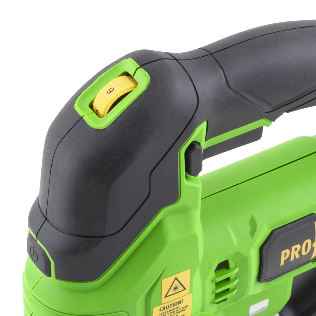 Dotaz na produkt Na splátky ještě dnesAku přímočará pila Procraft ST24 je určena k řezání dřevěných, ocelových a litinových materiálů. kvalitní silný motor o otáčkách 3000 zaručí dlouhodobý a bezporuchový chod. Rychloupínání umožňuje snadnou a rychlou výměnu pilových listů. 3.stupňové nastavení předkmitu usnadní řezání dřeva. Vybaven laserem, který usnadňuje kontrolu vedení řezu a ofukem zajistí čistotu řezaného materiálu. Možnost nastavení úhlu řezání v rozsahu ±45°. Součástí dodávky je adaptér na vysavač, paralelní doraz. Váha 1.8Kg Balení karton.