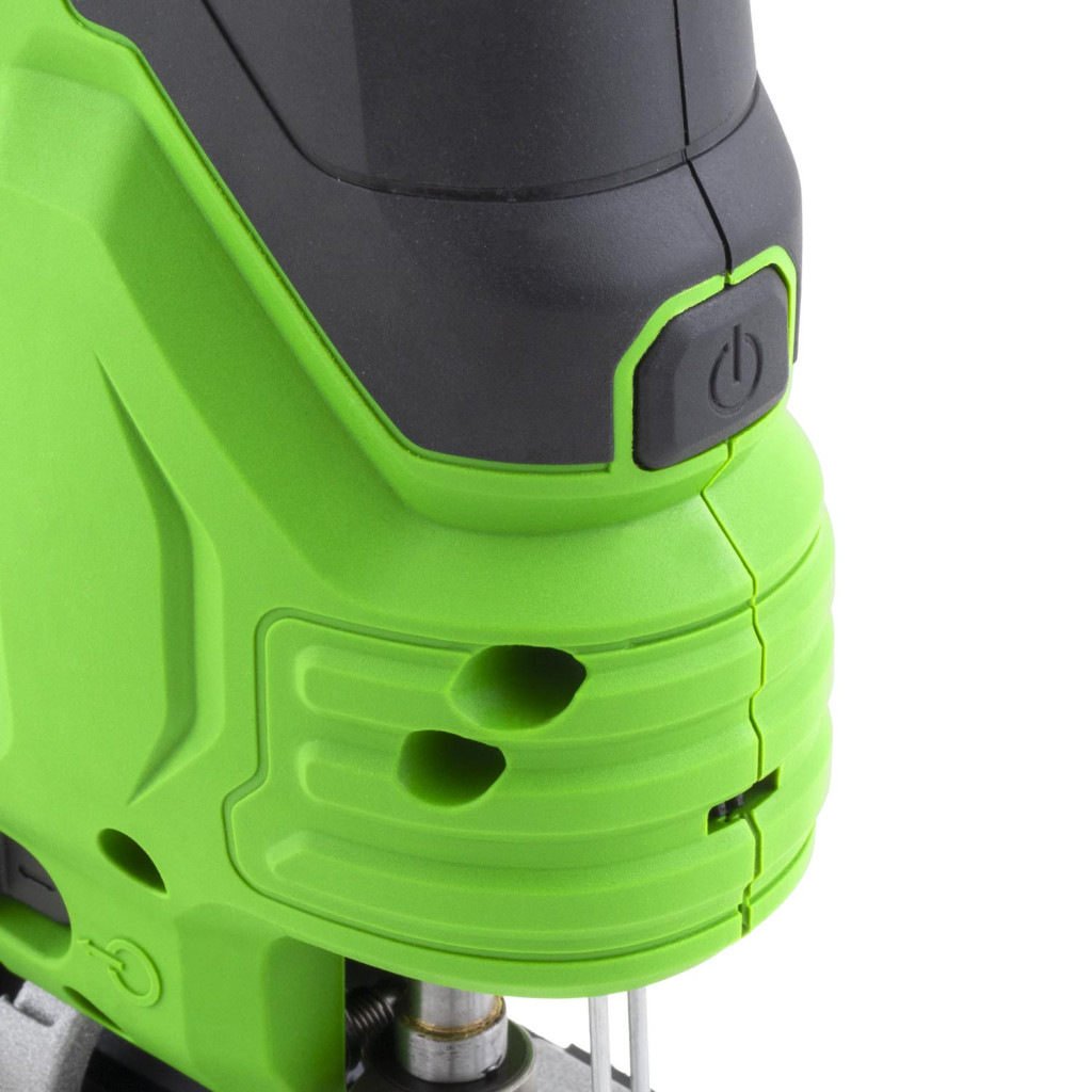 Regulace otáček (800–3000 min⁻¹): Umožňuje přizpůsobit rychlost řezání typu materiálu – od jemného řezu v laminátu až po rychlé dělení dřeva.