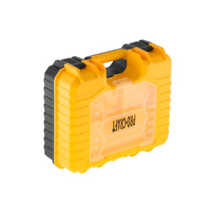 Odolný plastový kufr zajišťuje bezpečné uložení a snadné přenášení celého setu.