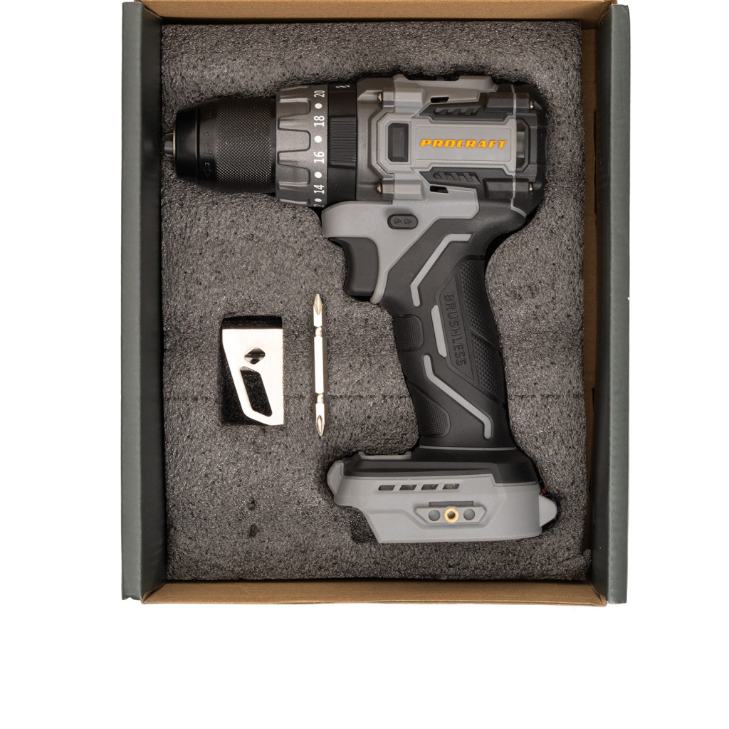 Baterie a nabíječka nejsou součástí balení. Šroubovák je kompatibilní s univerzální 20V baterií Procraft, kterou lze využít i pro další nářadí této řady.