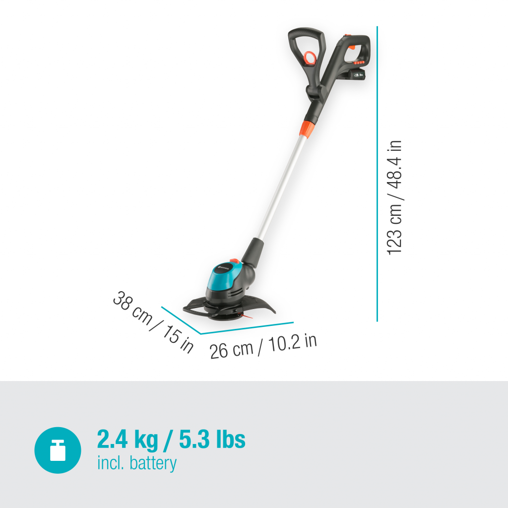 GARDENA akumulátorový trimmer EasyCut 23/18V P4A se dodává v sadě s akumulátorem 18 V POWER FOR ALL s nabíječkou. Aliance POWER FOR ALL je jednou z největších aliancí předních světových výrobců akumulátorů různých značek. Akumulátor je proto kompatibilní s řadou dalších přístrojů pro dům a zahradu – znamená to, že nebudete potřebovat ke každému přístroji další akumulátor. Tím ušetříte peníze a zajistíte si trvalou flexibilitu! Vášeň poháněná značkou GARDENA - zahradní akumulátorové vybavení, které vám poskytuje svobodu při práci.