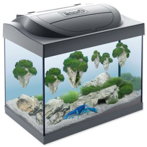 Dotaz na produkt Na splátky ještě dnesAkvárium o objemu 30 litrů ve stylovém designu pro krevetky nebo malé rybky se základním vybavením.