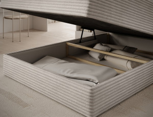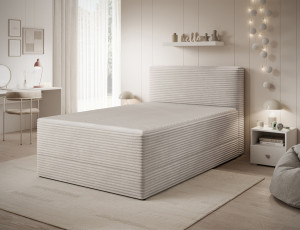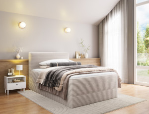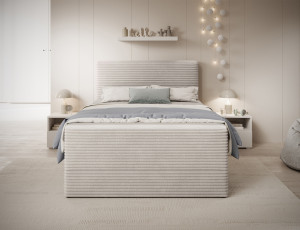 Dotaz na produktThe Alamito boxspring bed is a functional and comfortable continental bed, designed for restful sleep and everyday use, making it an excellent practical choice for the bedroom. Its solid construction, with a height of 108 cm and a length of 215 cm, ensures stability and proper support, while carefully selected materials contribute to durability and comfort. The headboard is filled with 5 cm thick T2130 foam, while the base is made from a combination of T2130 foam, a bonell spring system, and T2540 foam, guaranteeing elasticity and sleeping comfort. The bed is complemented by a 5 cm thick topper, which enhances comfort and body adaptation. It features a practical bedding storage compartment that makes organization easier and helps optimize bedroom space. The structure includes a bonell spring mattress permanently mounted on a frame made of solid wood and particle board, providing a sturdy base and long-lasting durability. The Alamito model is available in two sizes: 120x200 cm and 140x200 cm, making it an ideal choice for both smaller and medium-sized bedrooms, combining aesthetics, functionality, and a high standard of sleep.Fabrics: Modullo 01
