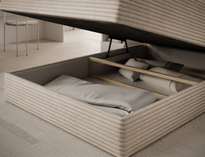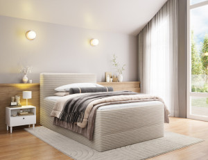 Dotaz na produktThe Alamito boxspring bed is a functional and comfortable continental bed, designed for restful sleep and everyday use, making it an excellent practical choice for the bedroom. Its solid construction, with a height of 108 cm and a length of 215 cm, ensures stability and proper support, while carefully selected materials contribute to durability and comfort. The headboard is filled with 5 cm thick T2130 foam, while the base is made from a combination of T2130 foam, a bonell spring system, and T2540 foam, guaranteeing elasticity and sleeping comfort. The bed is complemented by a 5 cm thick topper, which enhances comfort and body adaptation. It features a practical bedding storage compartment that makes organization easier and helps optimize bedroom space. The structure includes a bonell spring mattress permanently mounted on a frame made of solid wood and particle board, providing a sturdy base and long-lasting durability. The Alamito model is available in two sizes: 120x200 cm and 140x200 cm, making it an ideal choice for both smaller and medium-sized bedrooms, combining aesthetics, functionality, and a high standard of sleep.Fabrics: Modullo 18
