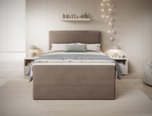 Dotaz na produktThe Alamito boxspring bed is a functional and comfortable continental bed, designed for restful sleep and everyday use, making it an excellent practical choice for the bedroom. Its solid construction, with a height of 108 cm and a length of 215 cm, ensures stability and proper support, while carefully selected materials contribute to durability and comfort. The headboard is filled with 5 cm thick T2130 foam, while the base is made from a combination of T2130 foam, a bonell spring system, and T2540 foam, guaranteeing elasticity and sleeping comfort. The bed is complemented by a 5 cm thick topper, which enhances comfort and body adaptation. It features a practical bedding storage compartment that makes organization easier and helps optimize bedroom space. The structure includes a bonell spring mattress permanently mounted on a frame made of solid wood and particle board, providing a sturdy base and long-lasting durability. The Alamito model is available in two sizes: 120x200 cm and 140x200 cm, making it an ideal choice for both smaller and medium-sized bedrooms, combining aesthetics, functionality, and a high standard of sleep.Fabrics: Modullo 20
