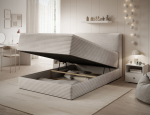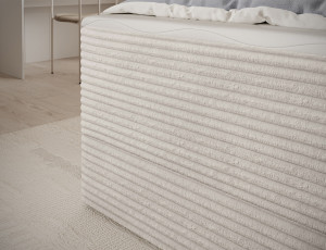 Dotaz na produktThe Alamito boxspring bed is a functional and comfortable continental bed, designed for restful sleep and everyday use, making it an excellent practical choice for the bedroom. Its solid construction, with a height of 108 cm and a length of 215 cm, ensures stability and proper support, while carefully selected materials contribute to durability and comfort. The headboard is filled with 5 cm thick T2130 foam, while the base is made from a combination of T2130 foam, a bonell spring system, and T2540 foam, guaranteeing elasticity and sleeping comfort. The bed is complemented by a 5 cm thick topper, which enhances comfort and body adaptation. It features a practical bedding storage compartment that makes organization easier and helps optimize bedroom space. The structure includes a bonell spring mattress permanently mounted on a frame made of solid wood and particle board, providing a sturdy base and long-lasting durability. The Alamito model is available in two sizes: 120x200 cm and 140x200 cm, making it an ideal choice for both smaller and medium-sized bedrooms, combining aesthetics, functionality, and a high standard of sleep.Fabrics: Modullo 01