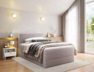 Dotaz na produktThe Alamito boxspring bed is a functional and comfortable continental bed, designed for restful sleep and everyday use, making it an excellent practical choice for the bedroom. Its solid construction, with a height of 108 cm and a length of 215 cm, ensures stability and proper support, while carefully selected materials contribute to durability and comfort. The headboard is filled with 5 cm thick T2130 foam, while the base is made from a combination of T2130 foam, a bonell spring system, and T2540 foam, guaranteeing elasticity and sleeping comfort. The bed is complemented by a 5 cm thick topper, which enhances comfort and body adaptation. It features a practical bedding storage compartment that makes organization easier and helps optimize bedroom space. The structure includes a bonell spring mattress permanently mounted on a frame made of solid wood and particle board, providing a sturdy base and long-lasting durability. The Alamito model is available in two sizes: 120x200 cm and 140x200 cm, making it an ideal choice for both smaller and medium-sized bedrooms, combining aesthetics, functionality, and a high standard of sleep.Fabrics: Modullo 03