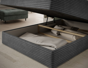 Dotaz na produktThe Alamito boxspring bed is a functional and comfortable continental bed, designed for restful sleep and everyday use, making it an excellent practical choice for the bedroom. Its solid construction, with a height of 108 cm and a length of 215 cm, ensures stability and proper support, while carefully selected materials contribute to durability and comfort. The headboard is filled with 5 cm thick T2130 foam, while the base is made from a combination of T2130 foam, a bonell spring system, and T2540 foam, guaranteeing elasticity and sleeping comfort. The bed is complemented by a 5 cm thick topper, which enhances comfort and body adaptation. It features a practical bedding storage compartment that makes organization easier and helps optimize bedroom space. The structure includes a bonell spring mattress permanently mounted on a frame made of solid wood and particle board, providing a sturdy base and long-lasting durability. The Alamito model is available in two sizes: 120x200 cm and 140x200 cm, making it an ideal choice for both smaller and medium-sized bedrooms, combining aesthetics, functionality, and a high standard of sleep.Fabrics: Modullo 04