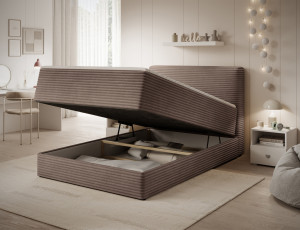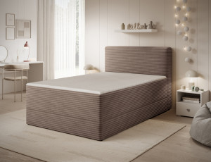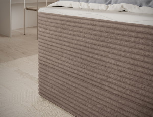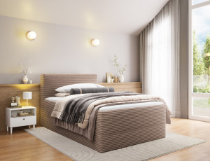 Dotaz na produktThe Alamito boxspring bed is a functional and comfortable continental bed, designed for restful sleep and everyday use, making it an excellent practical choice for the bedroom. Its solid construction, with a height of 108 cm and a length of 215 cm, ensures stability and proper support, while carefully selected materials contribute to durability and comfort. The headboard is filled with 5 cm thick T2130 foam, while the base is made from a combination of T2130 foam, a bonell spring system, and T2540 foam, guaranteeing elasticity and sleeping comfort. The bed is complemented by a 5 cm thick topper, which enhances comfort and body adaptation. It features a practical bedding storage compartment that makes organization easier and helps optimize bedroom space. The structure includes a bonell spring mattress permanently mounted on a frame made of solid wood and particle board, providing a sturdy base and long-lasting durability. The Alamito model is available in two sizes: 120x200 cm and 140x200 cm, making it an ideal choice for both smaller and medium-sized bedrooms, combining aesthetics, functionality, and a high standard of sleep.Fabrics: Modullo 20