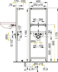 šířka 40 cmhloubka 17-22 cmvýška 117 cmmateriál kov ošetřený práškovou barvoupro závěsné umyvadlopro montáž stojánkové armaturypro montáž před nosnou stěnu nebo do sádrokartonové konstrukcesamonosný...