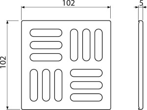 Nerezová ocel obsahující UV stabilizátor – zaručuje odolnost proti bazénové chemii a účinkům UV záření; Masivní nerezová mřížka 102×102×5 mm; Materiál: nerezová ocel AISI 316, DIN 1.4401