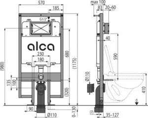 - pro montáž závěsného WC s připojovací roztečí 180 mm nebo 230 mm