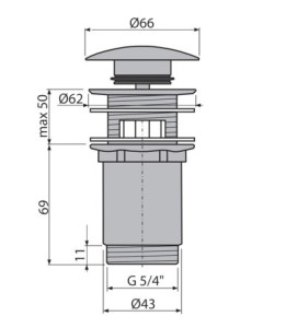 ALCA umyvadlová výpust 5/4", CLICK/CLACK, s přepadem, velká zátka, kartáčovaný gun metal