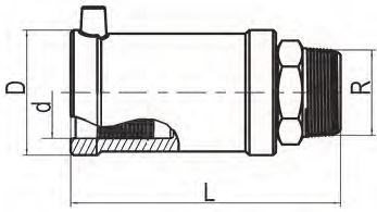 - vnější závit z mosazi nerozebiratelně spojený a zabezpečený