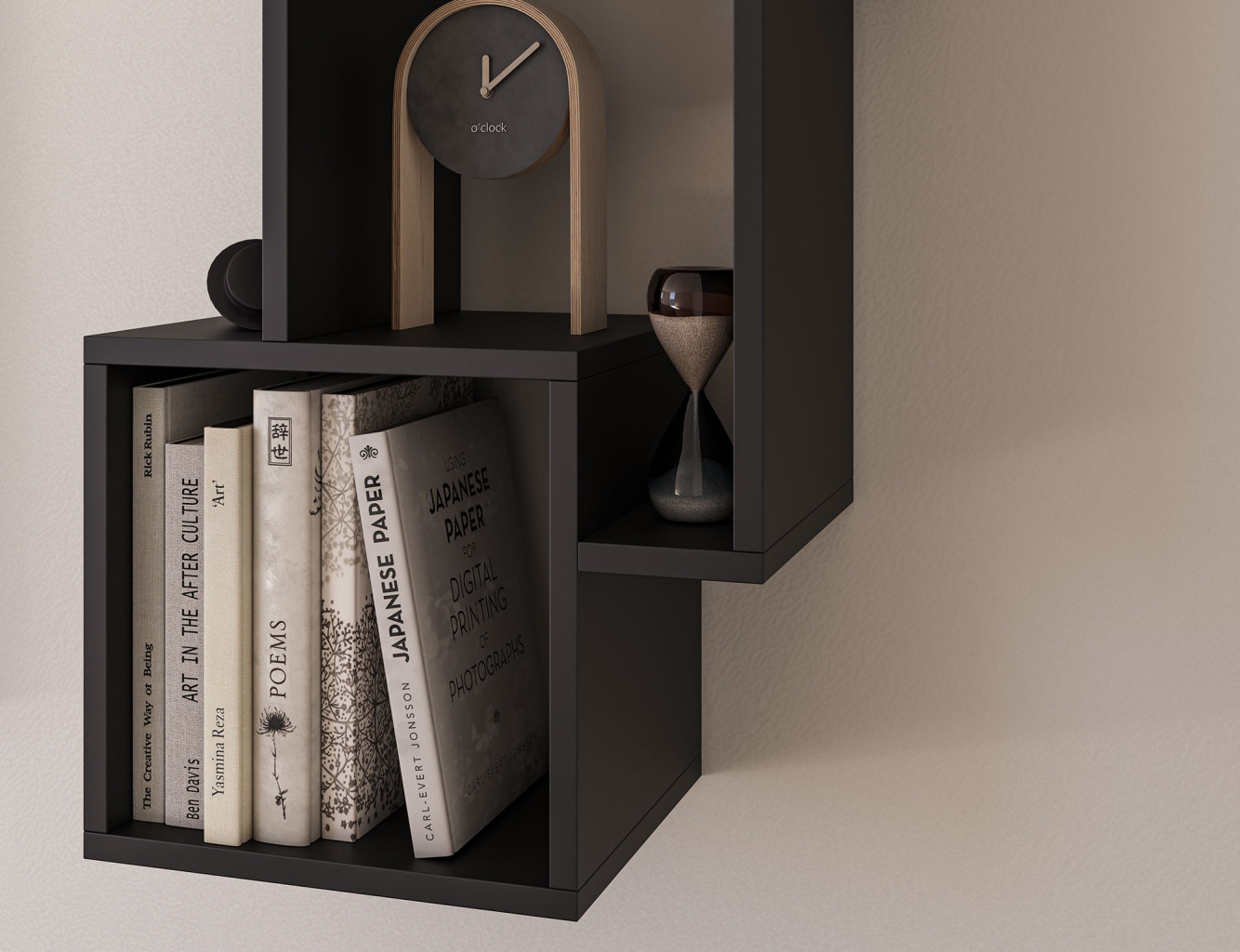 Dotaz na produkt Na splátky ještě dnesZávěsná police Alitty je stylový a funkční interiérový prvek, který se skládá ze tří menších polic různých velikostí. Celkové rozměry sady jsou 96x46x25 cm. Každá police se liší velikostí, což umožňuje atraktivní uspořádání předmětů různých rozměrů a vytváří tak zajímavý vizuální dojem na zdi. Tato police je ideálním řešením do obývacího pokoje, ložnice, kanceláře nebo chodby. Díky modernímu designu a všestranným rozměrům se police Alitty hodí do různých stylů interiéru a dodává mu charakter i funkčnost. Je ideální pro uložení knih, dekorací, rostlin a dalších drobných předmětů, které chcete mít na dosah ruky nebo je vystavit.Látka: Černá