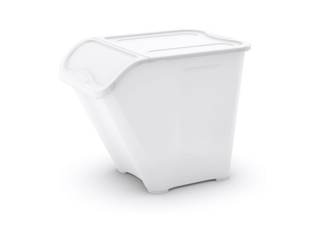 Bílé provedení může sloužit ke snadnému rozpoznání obsahu. V případě potřeby je možné více boxů poskládat na sebe a šetřit tak místo. Je opatřen praktickým dvojitým víkem, které umožňuje jen částečné otevření. Rozměry All In Boxu L ** jsou **38,5 x 32 x 54,5 cm.