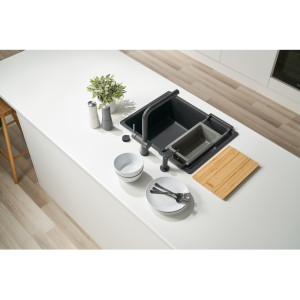 Dotaz na produkt Na splátky ještě dnesTento set obsahuje: Teleskopický držák, přípravnou desku a velkou odkapávací misku. All-In promění váš dřez ve stylový a hravý pracovní prostor. Flexibilní systém doplňků pro přípravu jídla navržený tak, aby do vaší kuchyně a života přinesl více harmonie. Tento dobře vybavený a intuitivní modulární systém má vše, co potřebujete k snadné přípravě jídel, a to díky tomu, že potřebné příslušenství máte na dosah. Doplňky s nekonečným použitím, které se přizpůsobí jakémukoli dřezu*. Až sedm samostatných příslušenství s více možnostmi použití. *S rozměrem vany dřezu do 540 mm.