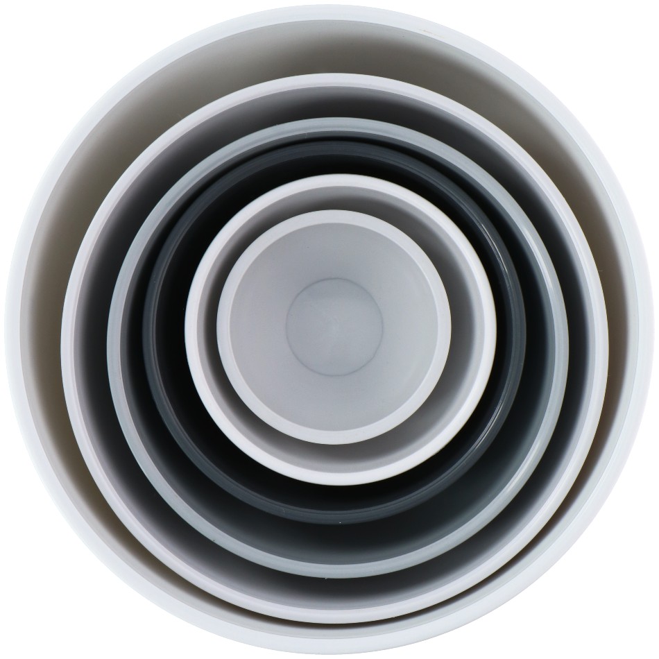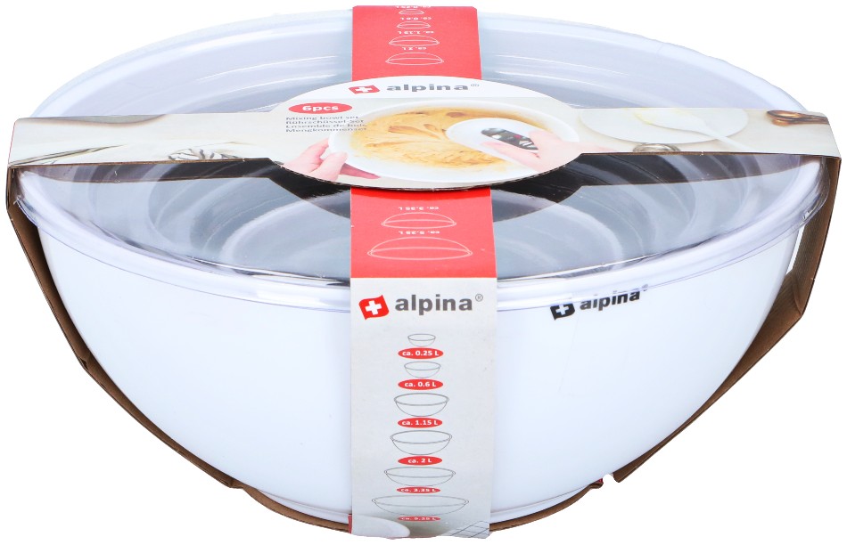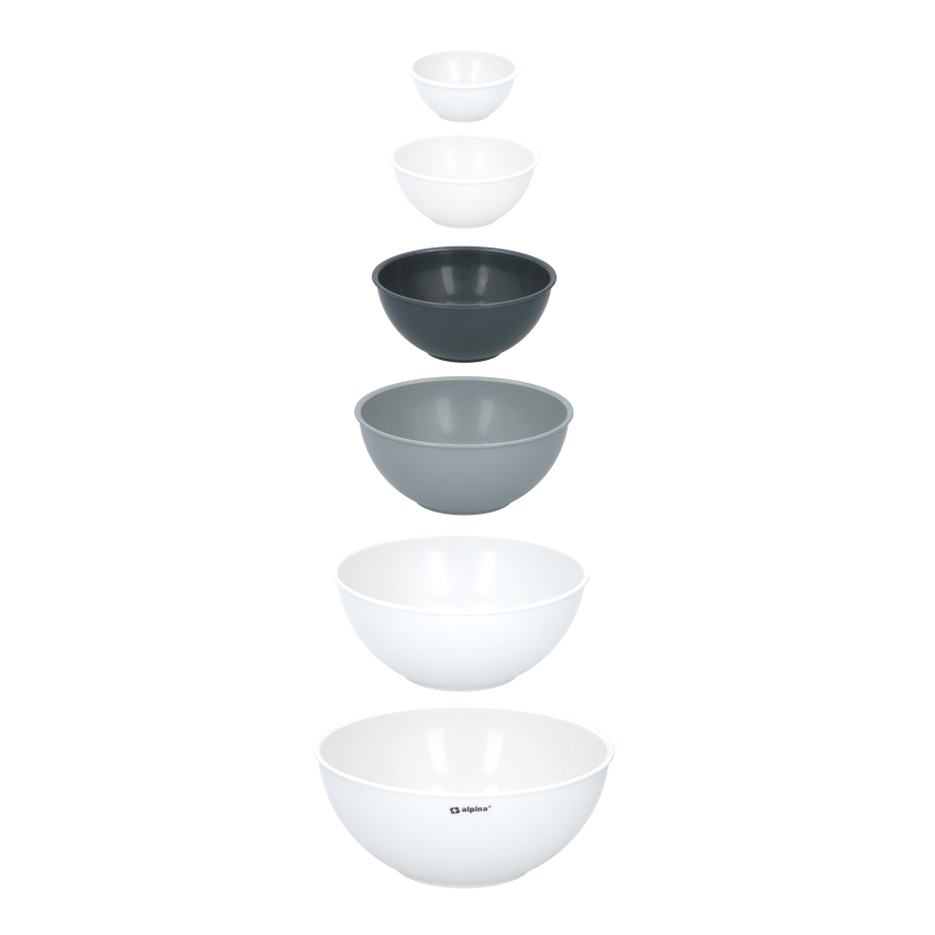 Dotaz na produktTyto misky využijete pro všechny vaše kuchařské a pečicí úkoly. Od šlehání vajíčka přes šlehání smetany až po míchání těsta a míchání.6 mixovacích misek do sebe velikostí zapadá, takže je lze snadno a kompaktně skladovat. Design a bílé a šedé tóny znamenají, že se perfektně hodí do každé moderní kuchyně.Mixovací nádoby jsou vhodné do mikrovlnné trouby. Můžete je tedy použít i na rozpuštění másla či čokolády nebo na zahřátí. Po použití je vložte do myčky nádobí.Specifikace:Velikosti nádob: 0,25/0,6/1,15/2/3,35 a 5,25 litrů.Možno mýt v myčceVhodné do mikrovlnné trouby