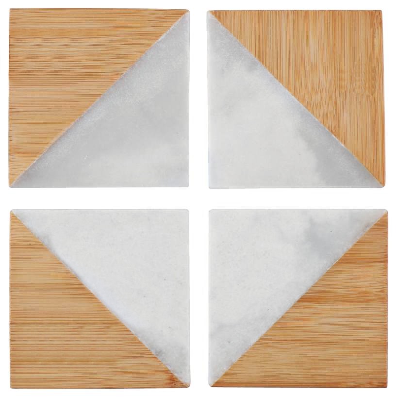 Dotaz na produktPřírodní materiál mramor/dřevo.Rozměr 10 x10 x 1 cm.4 ks čtverec.