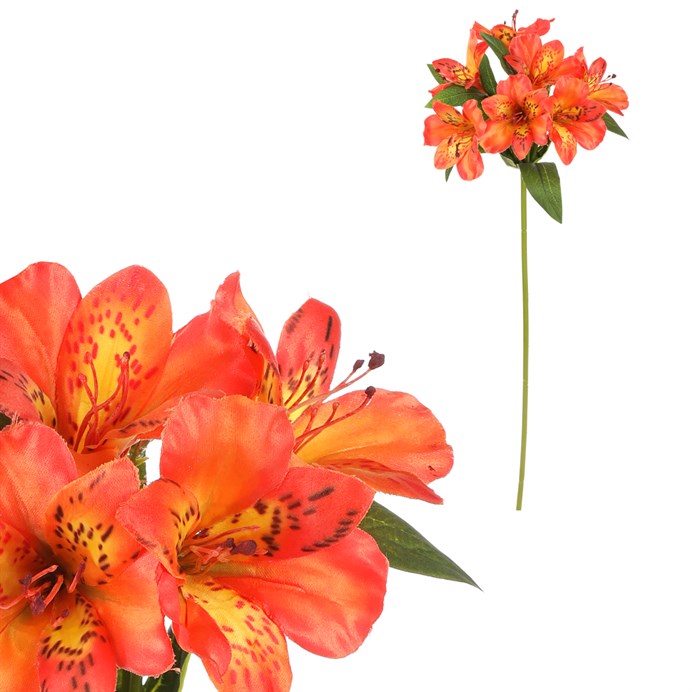 Dotaz na produktAlstromérie, známá také jako Peruánská lilie, je květina původem z Jižní Ameriky, zejména právě z Peru. Má trubkovité až zvonkovité květy různých barev, včetně červené, oranžové, žluté, růžové, bílé a fialové, často s výraznými vzory. Je oblíbená pro svou dlouhou trvanlivost jako řezaná květina a symbolizuje přátelství a oddanost. Vyžadují slunné nebo polo stinné stanoviště, dobře odvodněnou půdu a pravidelnou zálivku. My si však můžeme vychutnávat krásu této květiny natrvalo a bez starostí díky umělé variantě, která je vysoce zdařilou kopií živé rostliny. Konkrétně tato s oranžovými květy se nejlépe hodí pro letní či podzimní květinové aranže.