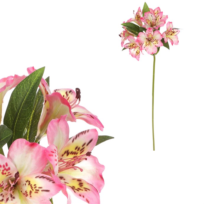 Dotaz na produktAlstromérie, známá také jako Peruánská lilie, je květina původem z Jižní Ameriky, zejména právě z Peru. Má trubkovité až zvonkovité květy různých barev, včetně červené, oranžové, žluté, růžové, bílé a fialové, často s výraznými vzory. Je oblíbená pro svou dlouhou trvanlivost jako řezaná květina a symbolizuje přátelství a oddanost. Vyžadují slunné nebo polo stinné stanoviště, dobře odvodněnou půdu a pravidelnou zálivku. My si však můžeme vychutnávat krásu této květiny natrvalo a bez starostí díky umělé variantě, která je vysoce zdařilou kopií živé rostliny. Konkrétně tato s červenými květy se nejlépe hodí pro jarní až podzimní květinové aranže.