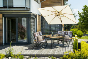 - výkyvný zahradní slunečník s boční tyčí s ULTRA UV ochranou Hledáte ten správný slunečník pro vaší zahradu, terasu nebo balkón? Doporučujeme elegantní a praktický slunečník Alu Wood s boční tyčí. Je vyrobený z hliníku, ale díky odolné povrchové úpravě má vzhled jasanového dřeva