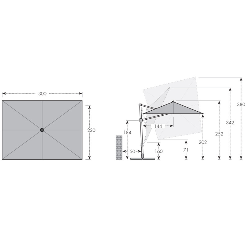 | Typ slunečníku: | S boční tyčí |