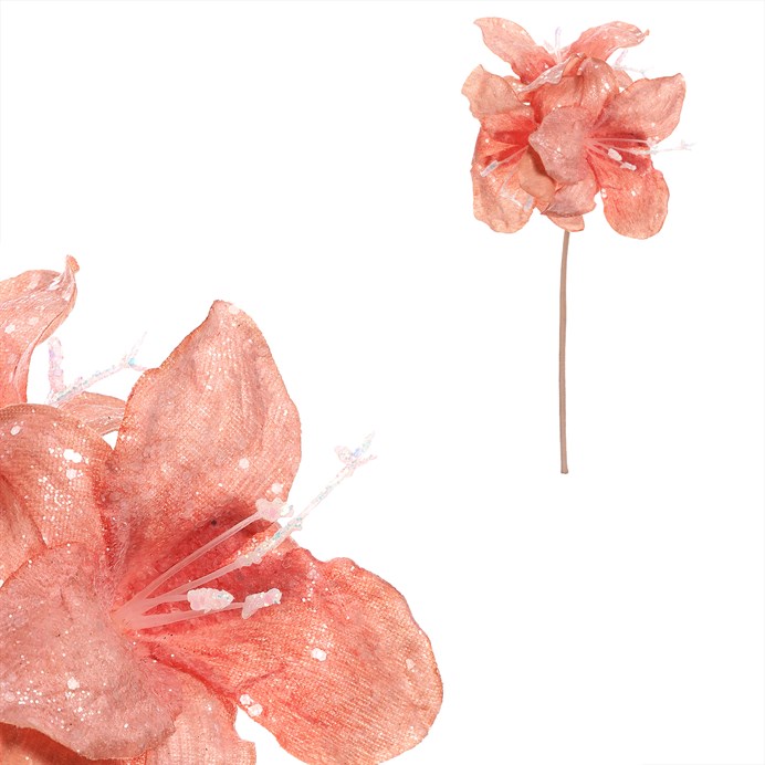 Dotaz na produktElegantní umělý amarylis se třemi květy na stonku vynikne v každém interiéru. Jemná cappuccino barva doplněná třpytkami dodává květině nádech luxusu. Perfektní volba pro zimní dekorace nebo slavnostní aranžmá.