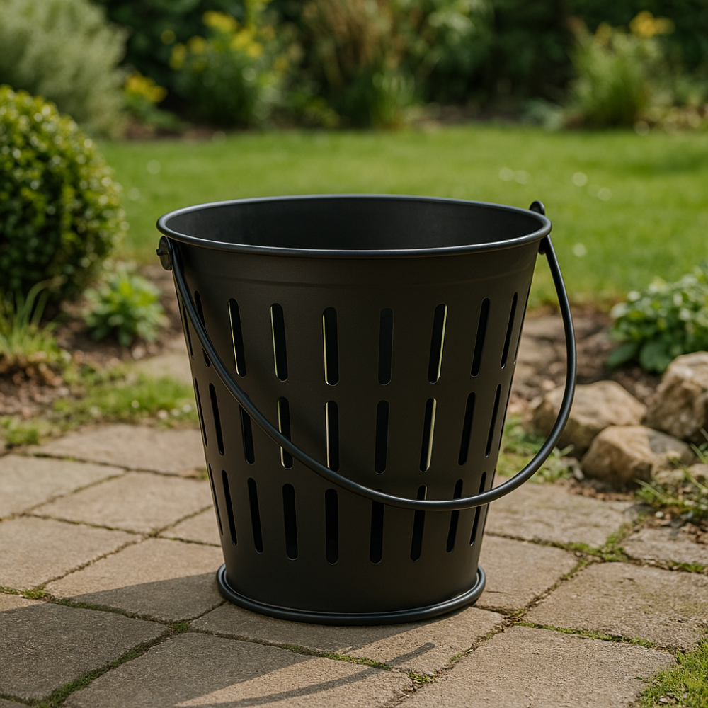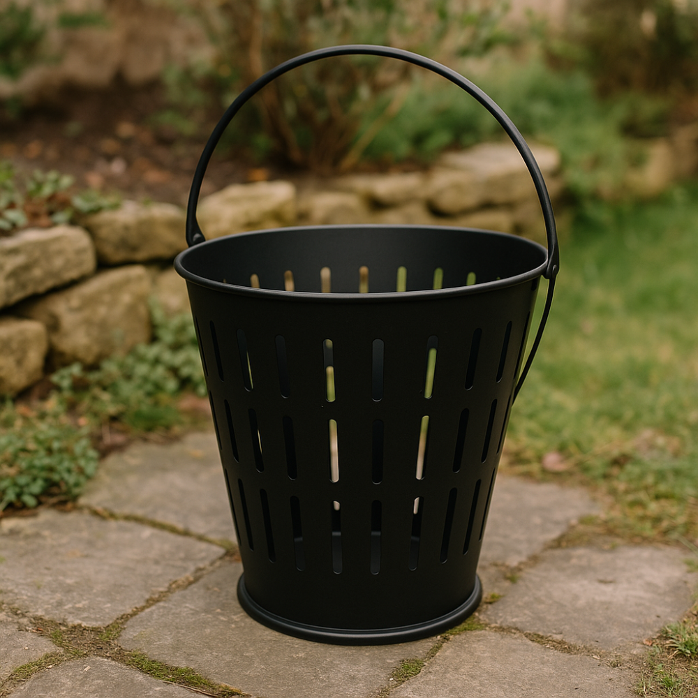 Praktický kovový koš na oheň s pevnou rukojetí je ideální pro zahradní posezení a vytváření příjemné atmosféry. Díky žáruvzdornému povrchu odolnému až do 800 °C je bezpečný a spolehlivý při používání.