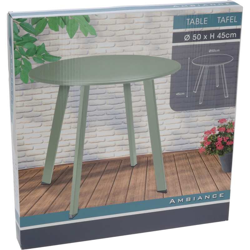 Dotaz na produktElegantní a praktický kovový stůl v matně zelené barvě je ideální pro menší zahrady, terasy či balkony. Je vyroben z odolného materiálu se zinkovým rámem a práškovým lakováním, které zajišťuje dlouhou životnost i při venkovním použití. Kompaktní rozměry a moderní design z něj dělají skvělý doplněk pro každé venkovní posezení.