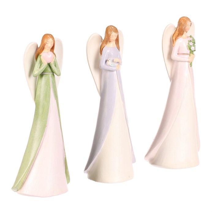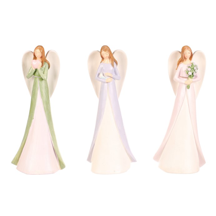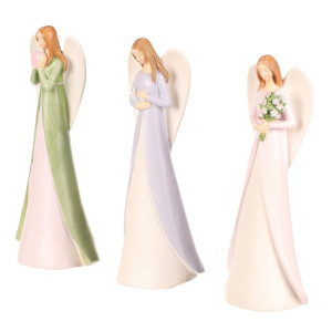 Dotaz na produkt Na splátky ještě dnesElegantní mix barevných andělů z polyresinu v jemných pastelových barvách přináší do vašeho domova útulnost a pozitivní energii. Každá dívčí postava představuje jiný symbol: jedna s holubičkou míru, druhá se srdíčkem lásky a třetí s bohatou kyticí. Tyto půvabné sošky jsou skvělým doplňkem pro každý interiér a mohou být milým dárkem pro vaše blízké.