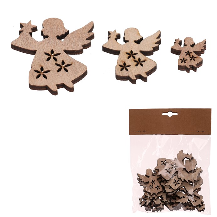Dotaz na produktZkrášlete si vaše sváteční prostředí i díky dřevěným vánočním ozdobám ve tvaru andílků s hvězdičkou. Jsou všechny v přírodní barvě dřeva a balené po 18 kusech v sáčku, kde najdete mix tří různých velikostí. Je už jen na fantazii a dekorativních schopnostech každého z vás, jak s těmito ozdobami naloží. Každopádně jsou výborným základem pro tvorbu různorodých svátečních aranží, dotvářených vlastníma rukama.